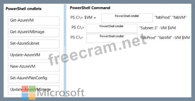 What should you do? To answer, drag the appropriate Power Shell cmdlet to the correct location in the Power Shell command. Each cmdlet may be used once, more than once, or not at all. You may need to drag the split bar between panes or scroll to view content.