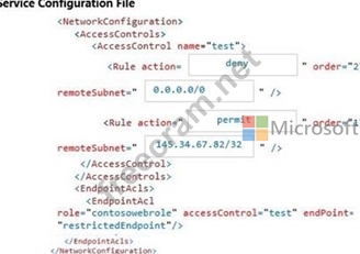 "deny". By default, when an endpoint is created, all traffic is permitted to the endpoint. So for that reason, it's important to understand how to create permit/deny rules and place them in the proper order of precedence to gain granular control over the network traffic that you choose to allow to reach the virtual machine endpoint. Note that at the instant you add one or more "permit" ranges, you are denying all other ranges by default. Moving forward from the first permit range, only packets from the permitted IP range will be able to communicate with the virtual machine endpoint.