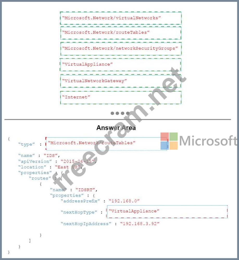 Your company is implementing an Intrusion Detection System (IDS). The IDS has the IP address 192.168.3.92. You plan to deploy the network by using Azure Resource Manager