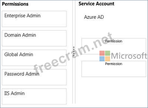 Which settings should you use? To answer, drag the appropriate permission to the service account. Each permission may be used once, more than once, or not at all. You may need to drag the split bar between panes or scroll to view content.