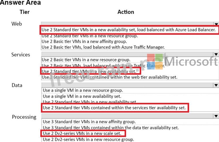 Data: Use 2 Standard tier VMs contained within the services tier availability set.