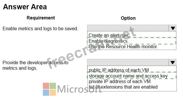 You need to ensure that the metrics and logs are saved and provide the developer access to the data.
