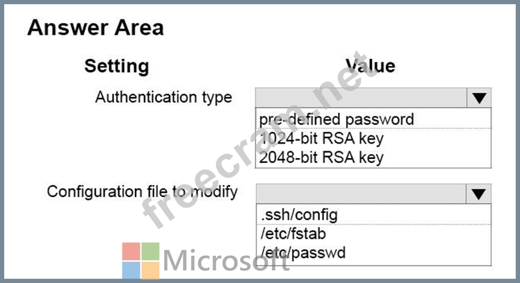 How should you configure the environment? To answer, configure the appropriate options in the answer area.