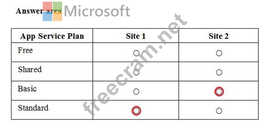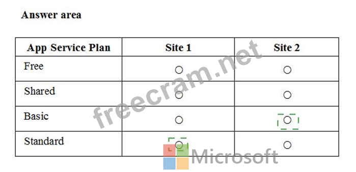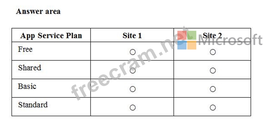 You plan to migrate the sites to Azure Web Apps. The sites have the following configurations: