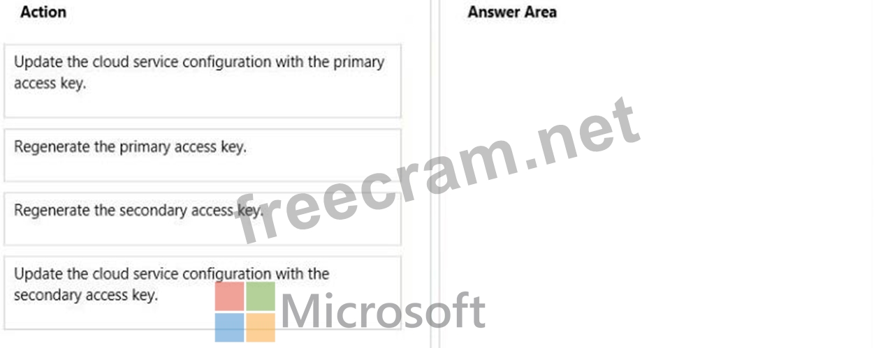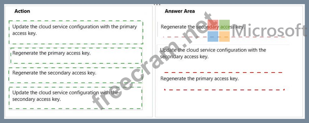 Regenerate the primary access key for your storage account. On the Access Keys blade, click Regenerate Key1, and then click Yes to confirm that you want to generate a new key.