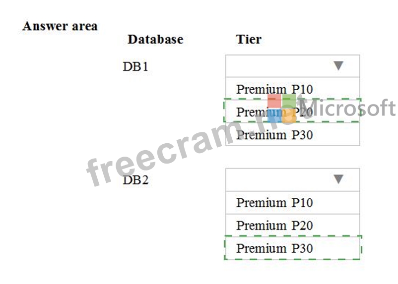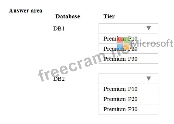 Which tier should you use for each database? To answer, select the appropriate options in the answer area.