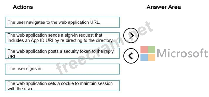 In which order are the actions performed? To answer, move all actions from the list of actions to the answer area and arrange them in the correct order.