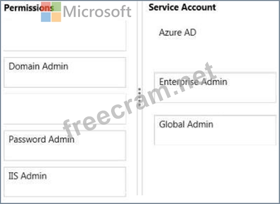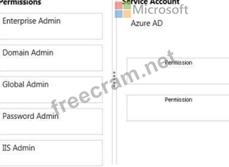 Which settings should you use? To answer, drag the appropriate permission to the service account. Each permission may be used once, more than once, or not at all. You may need to drag the split bar between panes or scroll to view content.