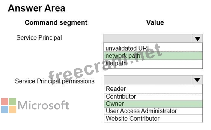 How should you configure the command? To answer, select the appropriate options in the answer area.