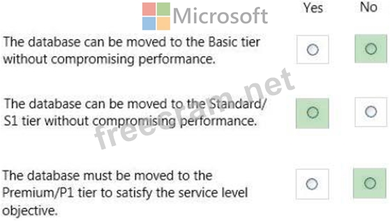You review the service tiers in Microsoft Azure SQL Database as well as the results of running performance queries for the usage of the database for the past week as shown in the exhibits. (Click the Exhibits button.)