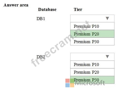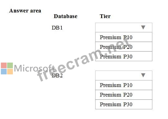 Which tier should you use for each database? To answer, select the appropriate options in the answer area.