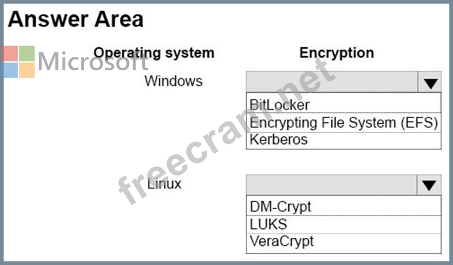 What should you use for each OS? To answer, select the appropriate encryption options in the answer area.