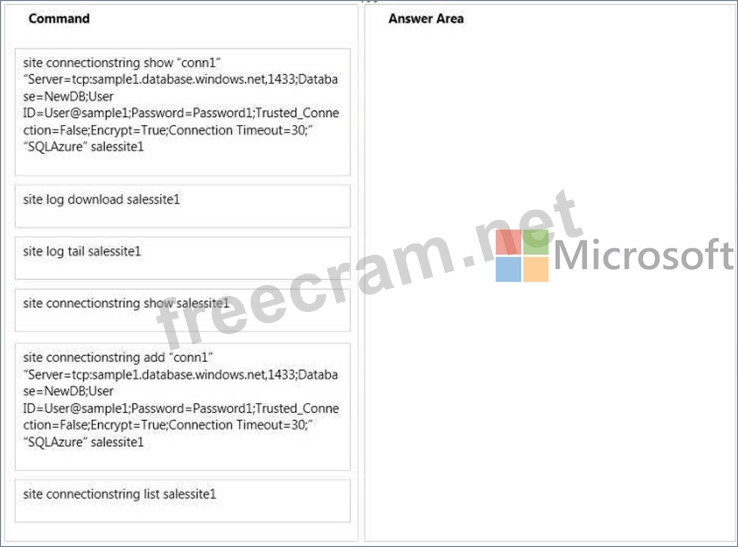 Which three xplat-cli commands should you perform in sequence? To answer, move the appropriate commands from the list of commands to the answer area and arrange them in the correct order.