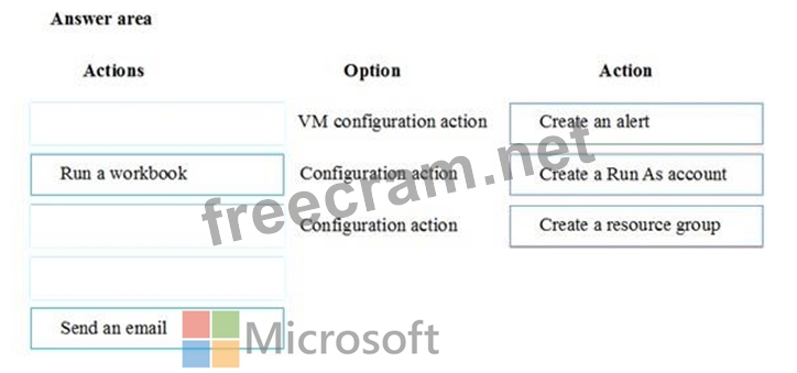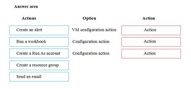 What should you do? To answer, drag the appropriate actions to the correct options. Each action may be used once, more than once, or not at all. You may need to drag the split bar between panes or scroll to view content.