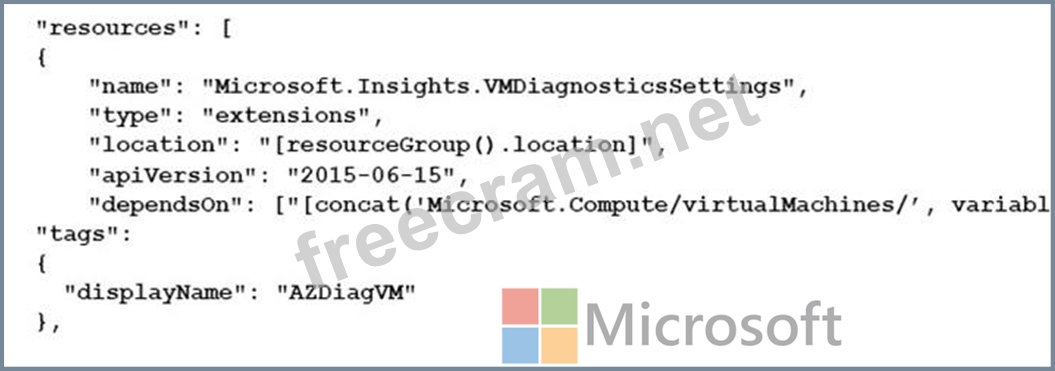 You plan to include the following JSON segment in the ARM template.