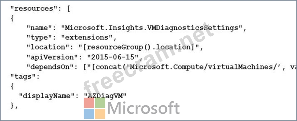 References: https://docs.microsoft.com/en-us/azure/virtual-machines/windows/extensions-diagnostics- template
