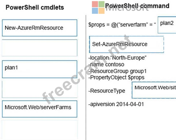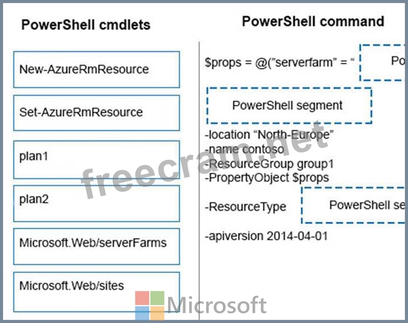 How should you complete the Azure PowerShell command?? To answer, drag the appropriate Azure PowerShell segment to the correct location. Each PowerShell segment may be used once, more than once, or not at all. You may need to drag the split bar between panes or scroll to view content.