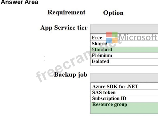 Question 188: HOTSPOT A company plans to create an App Service that uses t...