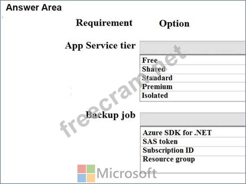 A company plans to create an App Service that uses the ASP.NET web app template. The company also plans to create a backup job for the App Service. The App Service must have the lowest recurring cost possible.