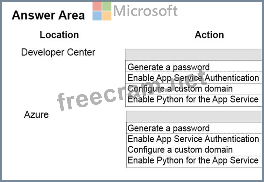 Question 188: HOTSPOT A company plans to create an App Service that uses t...