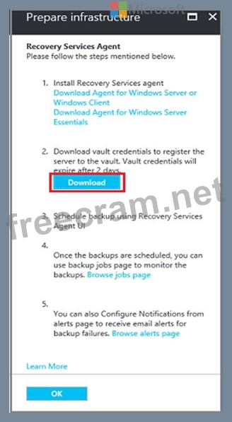 You create an Azure Recovery Services vault and download the backup agent installation file.