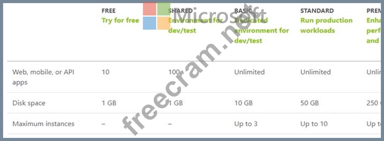 A company uses Azure to host virtual machines (VMs) and web apps. You plan to deploy a new web app in the Shared App Service tier.