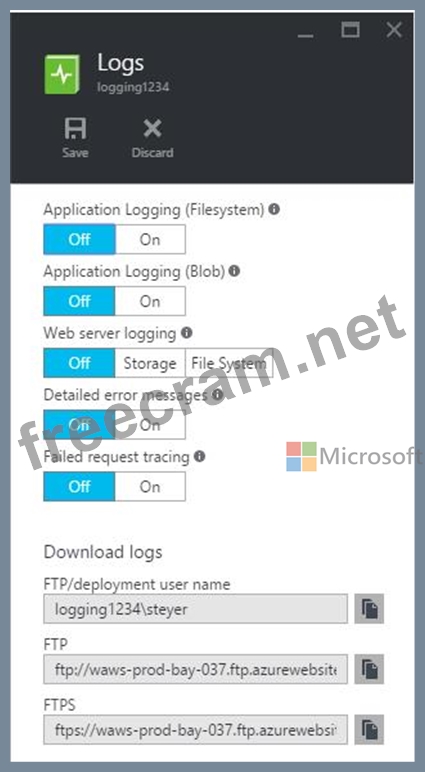Question 70: You manage an Azure Web Site named contosoweb. Logging is en...