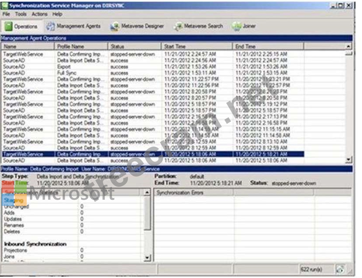 10. Perform a full sync: on the Management Agent tab, right-click SourceAD, click Run, click Full Import Full Sync, and then click OK.