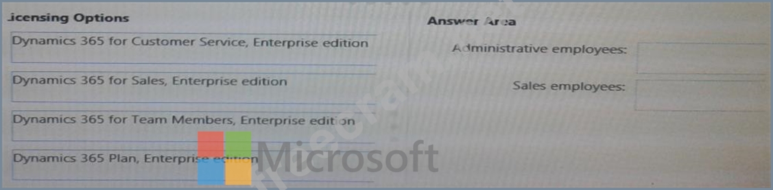 What is the most cost-effective licensing option for the administrative employees and the sales employees? To answer, drag the appropriate licensing options to the connect employees. Each licensing option may be used once, more than once, or not at all. You may need to drag the split bar between panes or scroll to view content.
