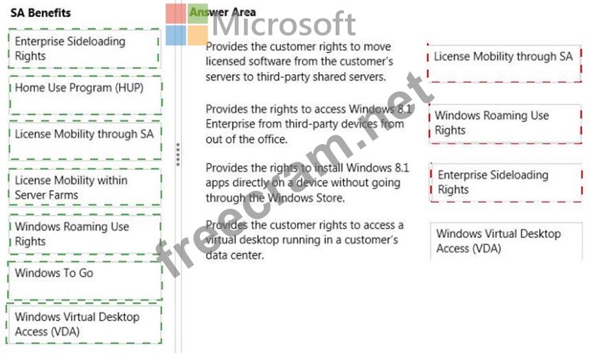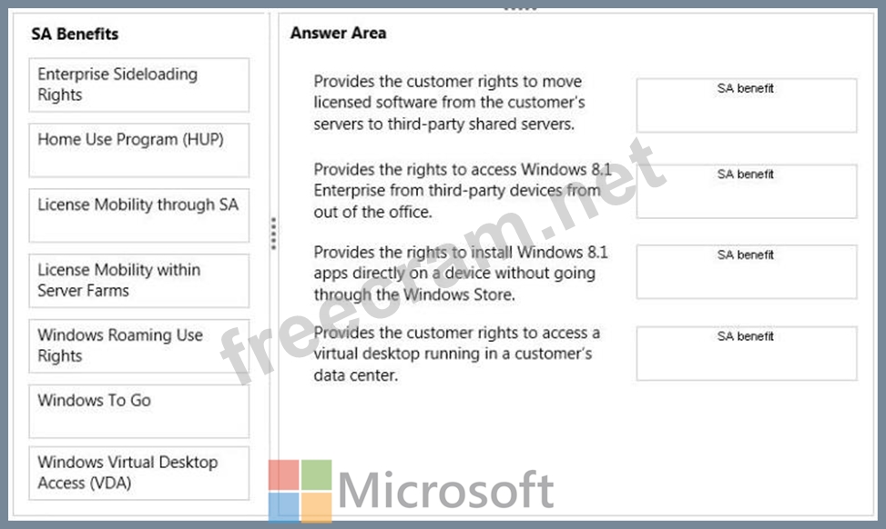 Question 31: DRAG DROP Match the Software Assurance (SA) benefits to the ...