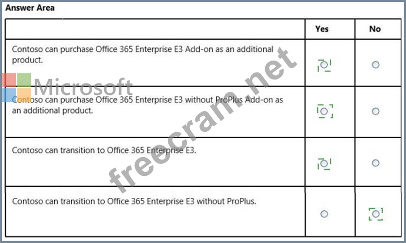 Question 62: A customer wants to use Microsoft Office 365 ProPlus, Yammer...