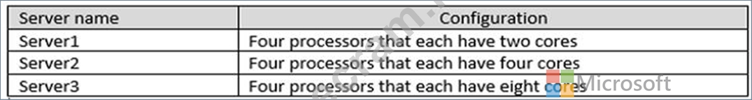 A company named Contoso, Ltd. plans to install Microsoft SQL Server on the physical servers shown in the following table.
