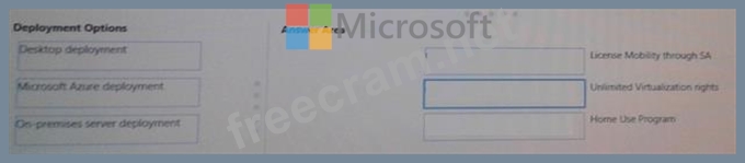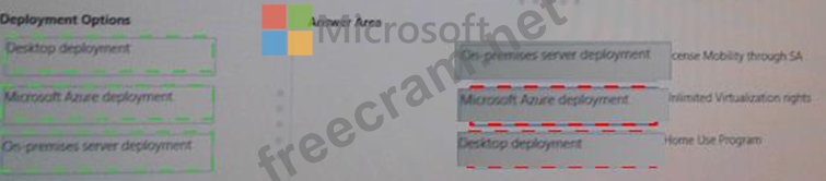 Match the deployment options to the corresponding Software Assurance (SA) benefits. To answer, drag the appropriate deployment option from the column on the left to its SA benefit on the right. Each deployment option may be used once, more than once, or not at all.