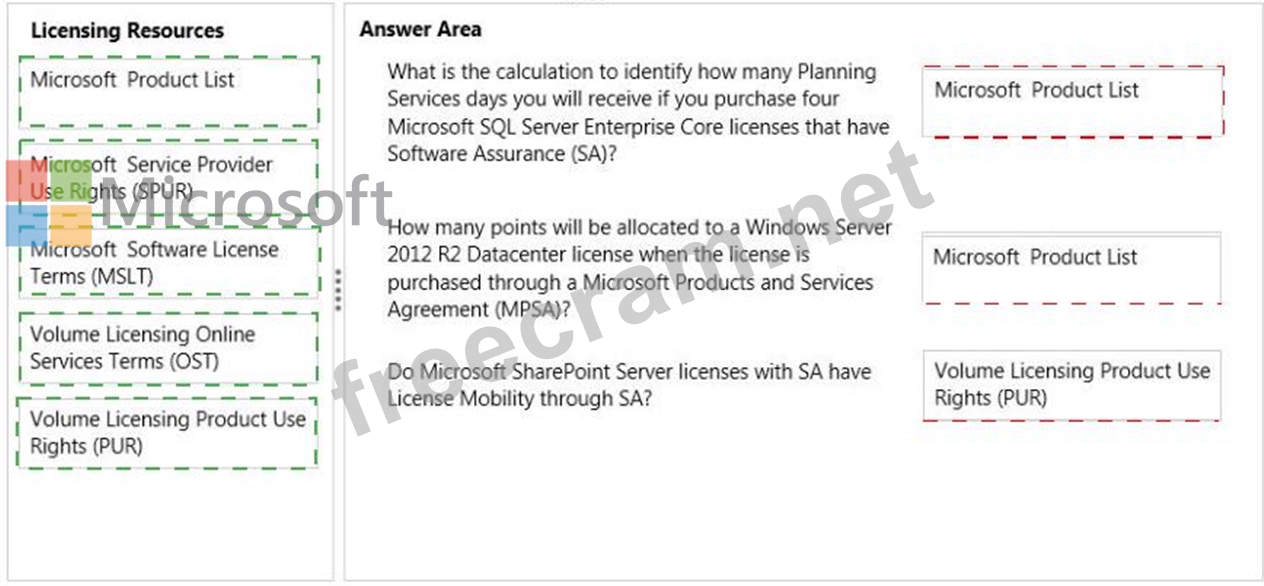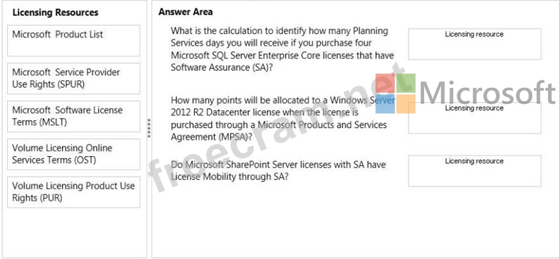 Question 88: DRAG DROP Match the licensing resources that can be used to ...