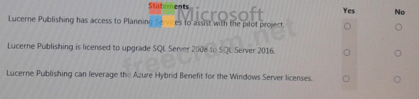 Question 8: HOTSPOT For each of the following statements, select Yes if ...