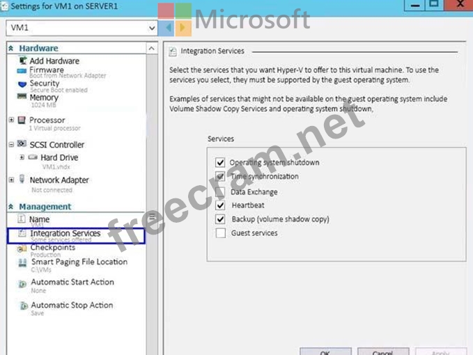 Solution: You start the Hyper-V Guest Service Interface service on VM1.