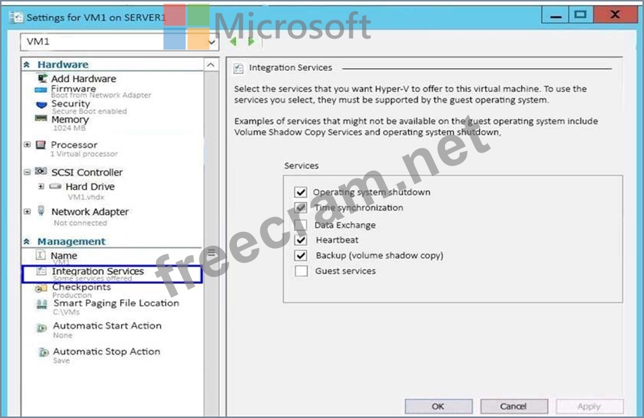 1 commentQuestion 45: You have a Hyper-V host named Server1 that runs Windows Serv...
