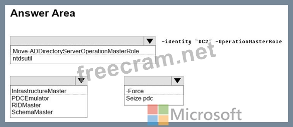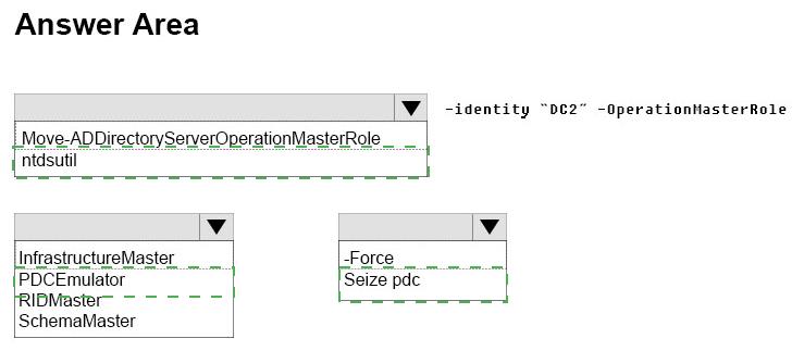 Your network contains an Active Directory forest. The forest contains two domain controllers named DC1 and DC2 that run Windows Server 2016. DC1 holds all of the operations master roles.