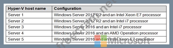 A company named Contoso, Ltd has five Hyper-V hosts that are configured as shown in the following