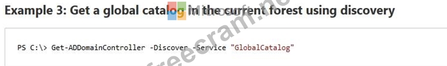 Solution: From Windows PowerShell, you run Get-ADDomainController -Discover -Service 2.