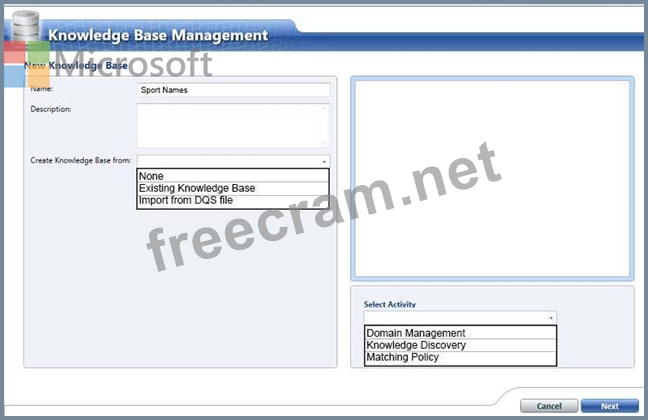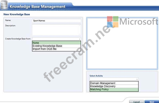 How should you configure the knowledge base? To answer, select the appropriate options in the dialog box in the answer area.