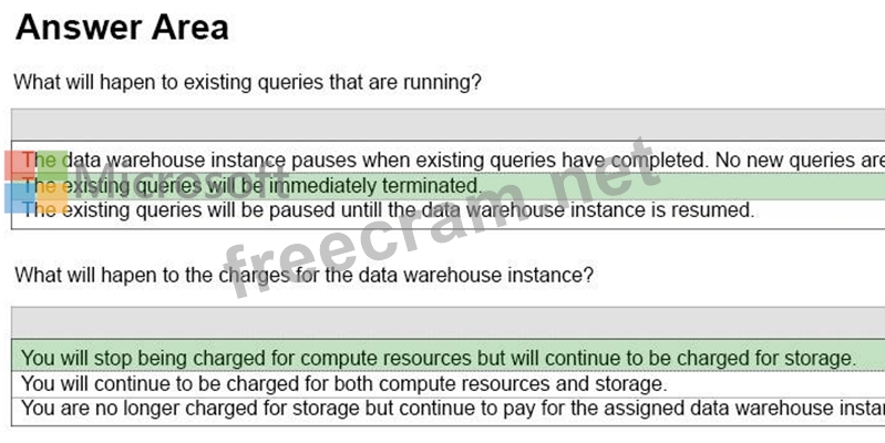 Compute and memory resources are returned to the pool of available resources in the data center Data Warehouse Unit (DWU) costs are zero for the duration of the pause.