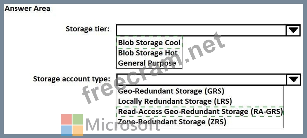 After data is processed by using AzureDF, the data must be archived and accessible forever. The archived data must meet a Service Level Agreement (SLA) for availability of 99 percent. If an Azure region fails, the archived data must be available for reading always. The storage solution for the archived data must minimize costs.
