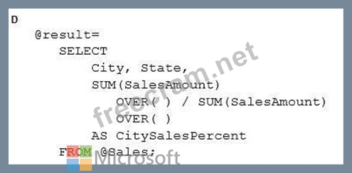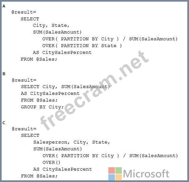 You need to use U-SQL to calculate the percentage of sales that each city has for its respective state.