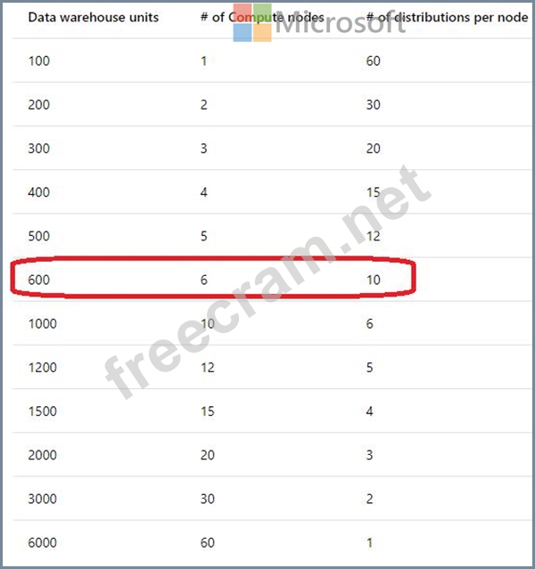 You need to configure Data Warehouse Units (DWUs) to ensure that you have six compute nodes. The solution must minimize costs.