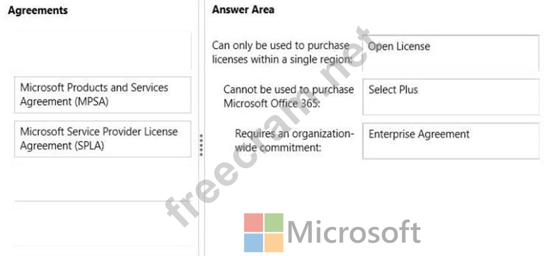 Question 58: HOTSPOT A company plans to sign an Enterprise Agreement. The...
