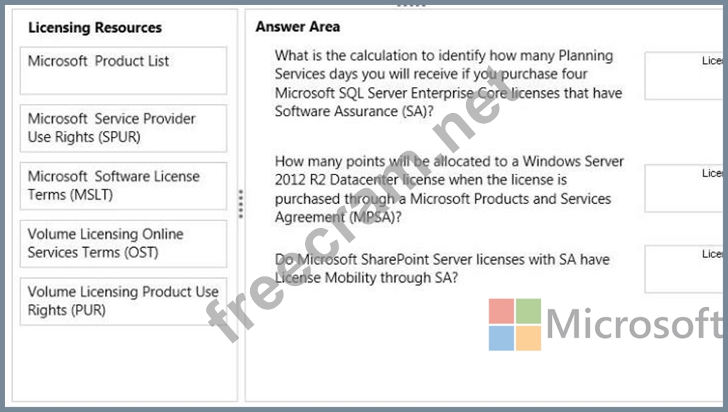 Qualified customers receive a number of Planning Services days based on the number of qualifying Office Application licenses, qualifying Server licenses and the number of Core CAL suites, SQL CAL and Enterprise CAL suites for which SA is acquired (see the charts below for details). The number of days a customer receives is for the available Planning Services offerings are combined into a pool of Planning Services days.