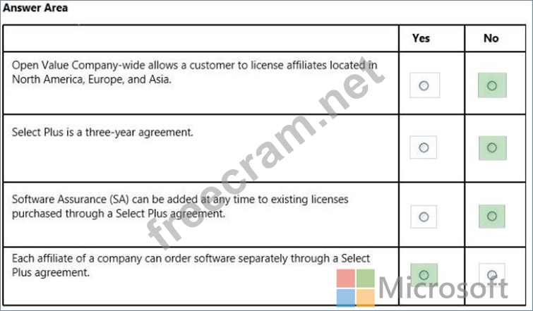 Question 27: HOTSPOT You have a customer that has a Select Plus agreement...