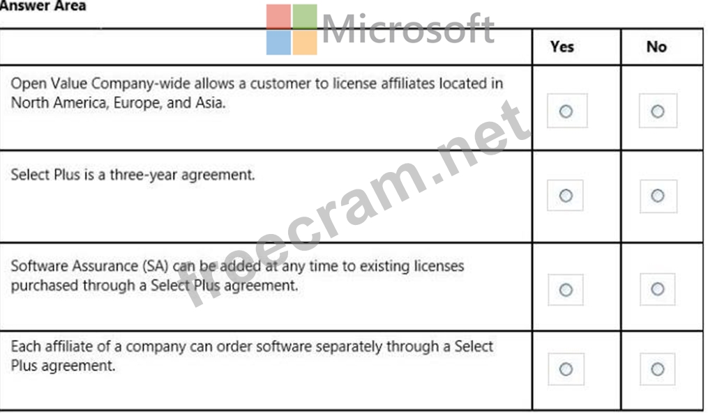 Question 88: HOTSPOT A company plans to sign an Enterprise Agreement. The...
