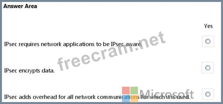 Question 5: HOTSPOT For each of the following statements, select Yes if ...